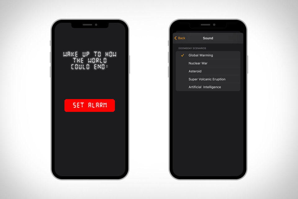 Climate change. War. There are lots of potential dangers that could wipe out humanity. The Doomsday Alarm Clock lets you choose one to awaken you. Developers Steven Nass & Peter Henningsen have coded in uncomfortable facts about a variety of potential world-ending scenarios, including super volcanos, runaway AI, global warming, asteroid strikes, and the ever-popular nuclear war. A snippet of audio related to the disaster of your choice will play when it’s time to rise, virtually guaranteeing you’ll stay awake when it goes off.
